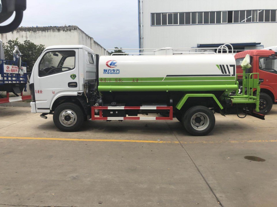 東風多利卡5噸灑水車罐體采用機器壓板一次性成型技術,采用先進旋邊機,罐體包罐機工藝保證了罐體制作的精度和美觀。全國獨有烤漆工藝,防腐除銹,多層底漆、面漆噴涂。 功能齊全,灌溉、噴灑、道路養護,噴霧降塵、高炮噴射等,采用優質水泵,合理設計水路管道,氣控取力器,作業能力強;加大罐體設計,可以裝作5方水,提高了車輛的使用效率。配備國內大功率灑水車專用水泵,可自吸自排,引水時間<15min,流量40m3/h,揚程35米。可選擇加裝加裝藥盤、氣動控制閥、噴藥設備、罐內防腐等。