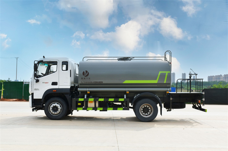 15方灑水車產品主要技術參數 序號 名稱 型號、規格 1 整車型號 CLT5183GPSEQ6A 型綠化噴灑車 2 發動機型號 D4.0NS6B195 3 發動機馬力/功率 康明斯 195 馬力/143KW 4 發動機排量 4000ML 5 變速箱 法士特 8 檔(帶高低檔) 6 輪胎規格 10.00 鋼絲胎 7 軸距 4500 8 總質量 18000KG 9 整備質量 7300KG 10 額定載質量 10505KG 11 整車尺寸(長×寬×高) 8.45*2.5*3.2 12 罐體容積 16 方 13 燃料種類 柴油 14 排放標準 國六 15 水泵型號 60/90 16 罐體材質 Q235 碳鋼