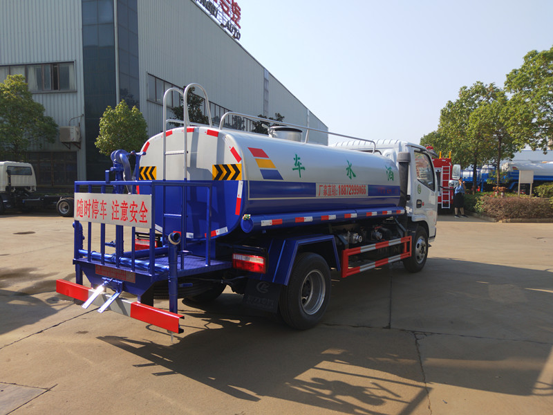東風(fēng)5噸灑水車(chē)吸程≧7米,灑水寬度≧14-16米,射程≧25-30米,引水時(shí)間<5min,流量60m3/h。前沖(噴)、后灑、帶側(cè)噴(花灑)、帶后工作平臺(tái)、平臺(tái)上安裝綠化灑水高炮(炮噴射形狀可調(diào)節(jié):直沖、大雨、中雨、毛毛雨、霧狀、可連續(xù)調(diào)節(jié),360°旋轉(zhuǎn)),配消防接口,自流閥,濾網(wǎng),帶自吸自排功能。配備大功率專(zhuān)用灑水泵,泵可自吸自排,安裝過(guò)濾網(wǎng),帶消防接口,可通過(guò)消防栓進(jìn)水,帶自流閥,隨車(chē)選裝20米綠化卷盤(pán),可噴灑農(nóng)藥,罐體金屬漆。罐體有橢圓和方圓罐兩種,可根據(jù)用戶(hù)的要求定做。了解東風(fēng)5噸灑水車(chē)價(jià)格及5噸灑水車(chē)報(bào)價(jià),請(qǐng)與程力廠家陶經(jīng)理聯(lián)系18872999066