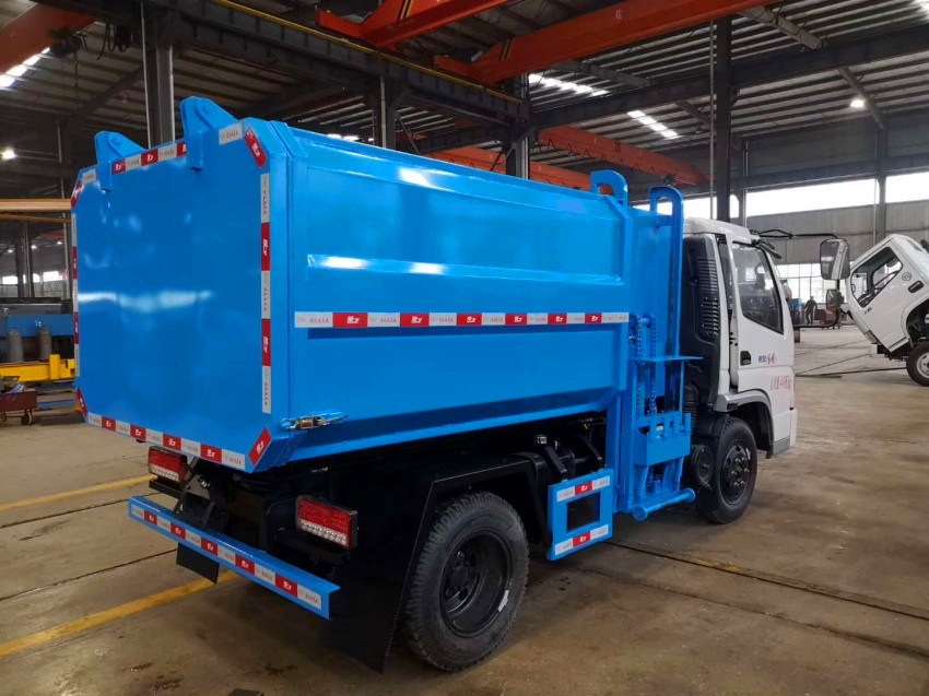 掛桶式垃圾車(自裝卸式垃圾車)介紹:掛桶式垃圾車又稱自裝卸式垃圾車,由密封式垃圾廂、液壓提升翻轉系統(tǒng)、操作系統(tǒng)組成。垃圾桶內垃圾翻倒上下一次工作循環(huán)時間≤50秒。可選配全國通用塑料垃圾桶和鐵桶,能實現一臺車與多個垃圾桶聯合作業(yè),循環(huán)運輸,充分提高了車輛的運輸能力,節(jié)省財務預算。廂體密封性好,無二次污染,可運輸各類垃圾,特別適用于短途運輸和轉運垃圾,如環(huán)衛(wèi)部門對城鎮(zhèn)垃圾的清理、運輸等。