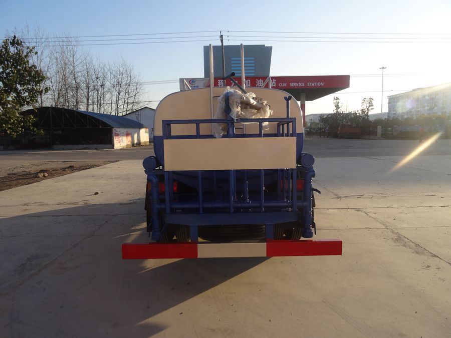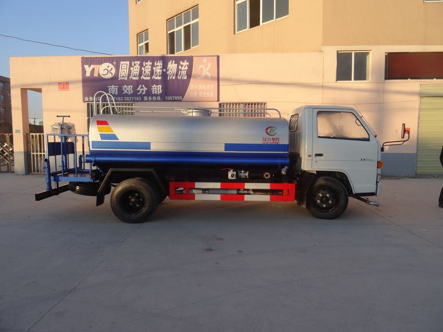 改裝配置:罐體采用4mm厚武鋼專用容積板制作,實(shí)際容積5立方,罐內(nèi)隔板具有防波作用,以減低汽車行駛時(shí)罐體液體的沖擊。泵 進(jìn)泵出,消防栓接口,前沖、后灑、側(cè)噴、后工作平臺帶綠化水炮,垂直吸程≧7米,灑水寬度≧14-16米,射程≧20-25米,引水時(shí) 間<5min,流量90m3/h。自流閥、濾網(wǎng)、帶自吸自排功能。兩根等長輸水管,金屬漆,其余標(biāo)配。可加裝藥盤、氣動(dòng)控制閥、噴藥設(shè)備、非車帶泵動(dòng)力等。