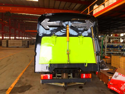 2、掃路車采用吸掃結合的收集,濕式除塵、電液控制液壓傾翻卸料的作業對路面進行清掃業。
