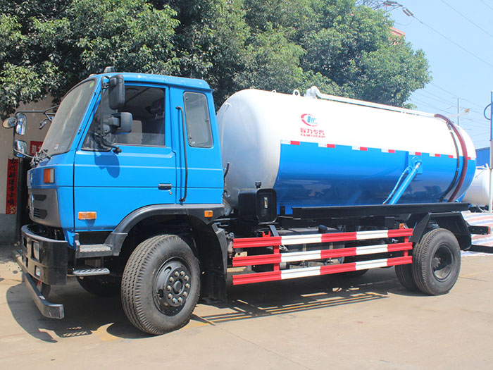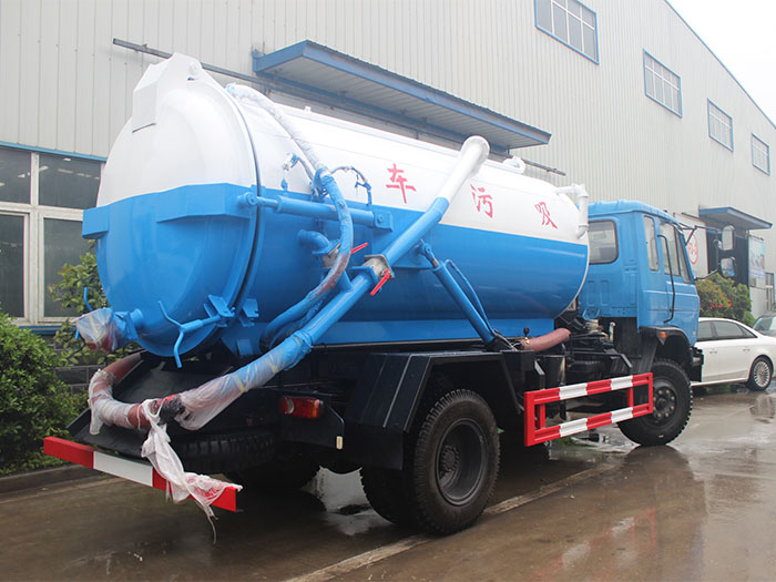 罐體采用6mm鋼板定做,容積10.6立方,配置SK12水循環真空泵或者隨州10噸真空泵,罐體液壓舉升,帶600的液壓快開。145東風10噸吸污車底盤配置:底盤配置:出玉柴160馬力發動機,東風145駕駛室,3950軸距,前橋2.8噸后橋7.65噸,5檔帶副變速,9.00輪胎, ABS,