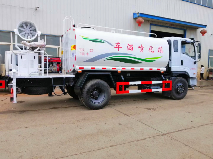 灑水車,又稱綠化噴灑車。城市環(huán)衛(wèi)主力車型大致有10噸灑水車,15噸灑水車,也可以加裝霧炮,成為專用霧炮車。主要用于道路清掃,園林綠化,森林滅火,工業(yè)除塵,消防急救等。具有自吸自排功能,垂直吸≥6米,前沖后灑,側(cè)噴,灑水寬度≥14米,后置工作臺(tái),帶綠化灑水高炮,射程≥28米,高壓炮噴水可調(diào)節(jié)成柱狀和霧狀,配備大功率專用灑水泵,帶消防接頭,自流閥,帶自吸功能。如果有消防選裝消防泵,射程可達(dá)50-60米