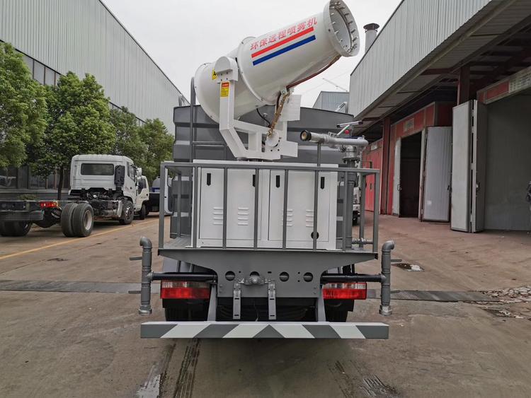抑塵車吸程≧7米,灑水寬度≧14-16米,射程≧25-40米,引水時間<5min,流量60m3/h。前沖(噴)、后灑、帶側(cè)噴(花灑)、帶后工作平臺、平臺上安裝綠化灑水高炮(炮噴射形狀可調(diào)節(jié):直沖、大雨、中雨、毛毛雨、霧狀、可連續(xù)調(diào)節(jié),360°旋轉(zhuǎn)),配消防接口,自流閥,濾網(wǎng),帶自吸自排功能。配備大功率專用灑水泵,泵可自吸自排,安裝過濾網(wǎng),帶消防接口,可通過消防栓進水,帶自流閥,此車尾部加裝大功率農(nóng)藥噴灑炮,噴灑狀態(tài)霧狀,有效射程15-45米,外部平臺帶獨立的機組。