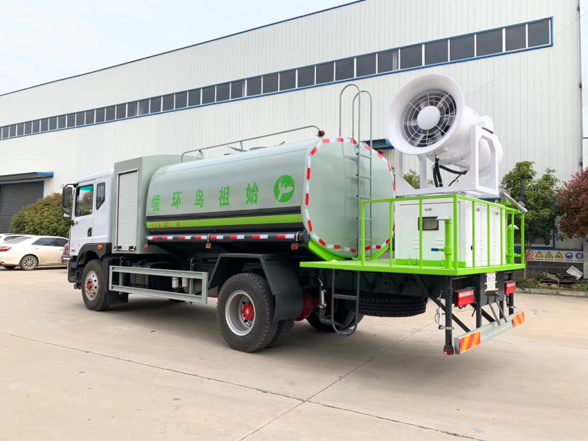 ◆ 前沖(噴)后灑,帶側(cè)噴,后置工作臺(tái),平臺(tái)上安裝綠化灑水高壓炮(炮噴射性狀可調(diào)成直沖狀、大雨、中雨、毛毛雨、炮可360°旋轉(zhuǎn),射程>35米)。
