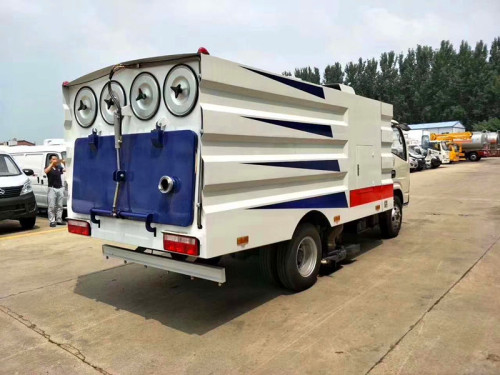 除塵體系的好壞,影響到掃路車的二次排放。因為車輛上裝空間的約束,現在掃路車的除塵體系有兩種方法,濕式除塵和干式除塵。現在的掃路車一般許多選用濕式除塵,其間又可分為噴水除塵和循環水除塵;但是,許多狀況下卻無法用水來處理除塵過濾的問題,比如水泥、炭粉、金屬礦粉的搜集。即便是城市大街的打掃,當粉塵量較大時,過多的灑水量也會使粉塵遇水結泥,打掃和傾卸困難。如果選用干式除塵,因為車載空間的約束,過濾精度、過濾風速和清灰方法的規劃又是一個大多數企業難于突破的技能和工藝瓶頸。過濾精度低,風道尾端冒灰嚴峻;過濾精度高,阻力大且簡單阻塞,降低吸力并且清灰困難。