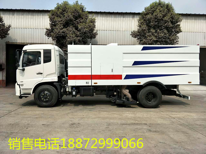 ? 洗掃車采用東風(fēng)天錦DFH1180EX8型國六二類汽車底盤改裝,加裝副發(fā)動(dòng)機(jī)、風(fēng)機(jī)、高壓水泵、清水箱、垃圾箱、左右立掃、帶噴水桿的寬吸嘴、低壓沖洗系統(tǒng)、掃盤降塵系統(tǒng)、液壓系統(tǒng)、專用裝置電控系統(tǒng)和副車架等改裝而成。