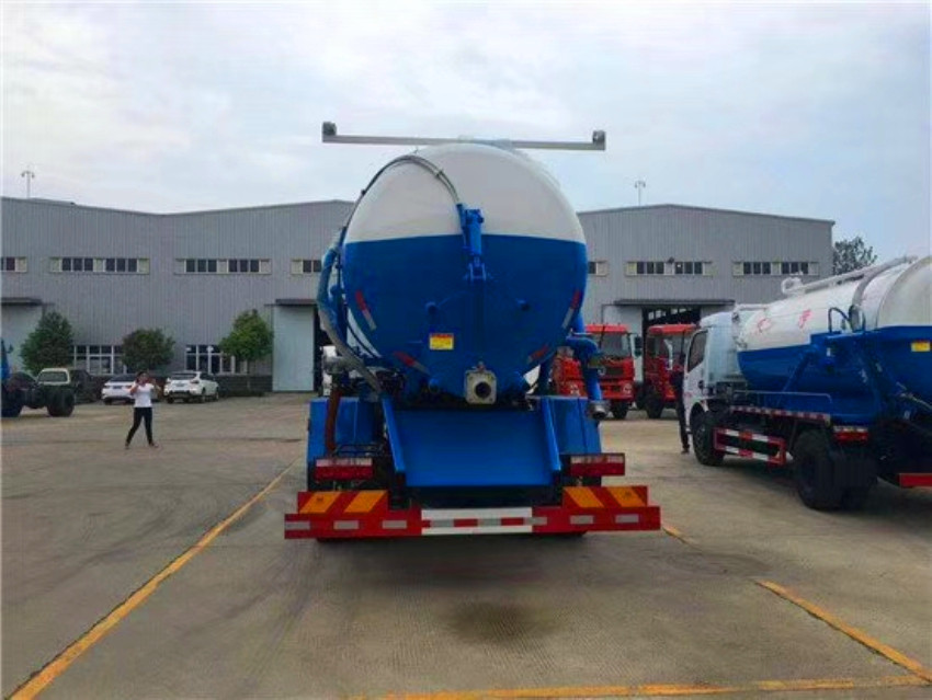 吸污車工作原理和吸糞車相同,但吸污車后蓋可以開啟,罐體可以舉升。加大了排污的方便性,故吸污車主要是抽一些粘稠類污物,如河道淤泥,下水道,建筑泥漿等。