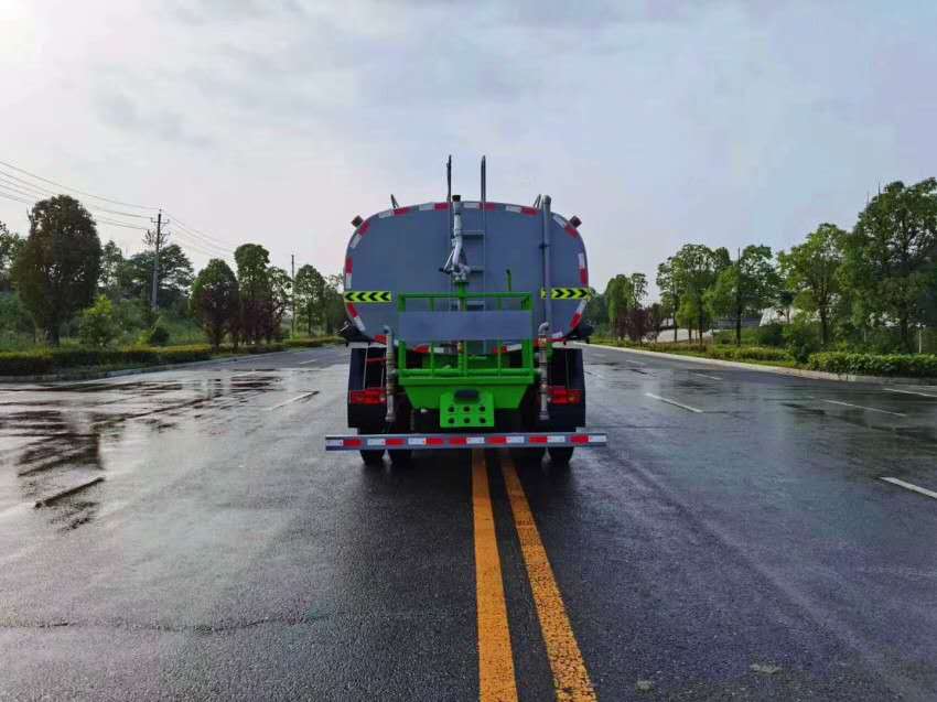 4.灑水車前噴頭位置較低,靠近地面,噴灑壓力較大,可用于沖洗路面;后噴頭位置較高(灑水車后噴頭一般左右各安裝一個),灑水面較寬,可用于公路施工灑水,使用后噴頭時,應(yīng)將前噴管關(guān)閉;使用可調(diào)噴頭灑水時,灑水寬度可根據(jù)需要調(diào)整。灑水寬度越寬,中間重疊量越少,灑水密度越均勻。