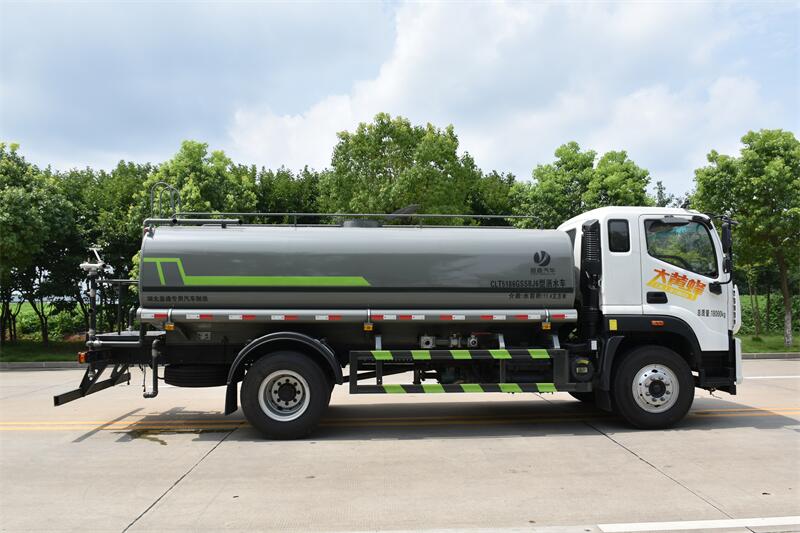 福田15噸灑水車標(biāo)配前噴(鴨嘴)、后沖、后灑、側(cè)噴、后置式工作 平臺(tái),平臺(tái)上配置綠化水炮(可 360°旋轉(zhuǎn),既可以調(diào)成柱狀,也可 以調(diào)成霧狀,更可以調(diào)成直沖狀、大雨、中雨、小雨、毛毛雨),配 備優(yōu)質(zhì)大功率專用灑水泵(可自吸自排,可從河里或池塘抽水到罐體), 取力器,雜物過(guò)濾網(wǎng),消防接口,自流球閥系統(tǒng)、取力器、球閥、濾網(wǎng) 均為國(guó)家標(biāo)準(zhǔn)產(chǎn)品,主管道加粗,法蘭墊、法蘭盤加厚,大通徑球閥。 整體具備性能優(yōu)良安全可靠、效率高、流量大、維修方便等特點(diǎn)。 二.產(chǎn)品配置 1.底盤配置: 發(fā)動(dòng)機(jī)玉柴 200 馬力(四缸),法士特 8 檔變速箱,軸距 4500,前 橋 4.5T,后橋 10T,10.00 鋼絲胎,斷氣剎,空調(diào),電動(dòng)玻璃,ABS。