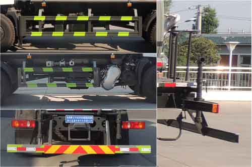 選裝噴霧裝置樣式。該車主要用于城鄉園林綠化噴灑,噴藥;主要裝置為水罐及噴灑裝置;罐體總容量:11.24立方米;罐體有效容積:10.7立方米;罐體外形尺寸(長×長軸×短軸)(mm):5200×2300×1370,4400×2350×1590;ABS型號:3631010-C2000, VIE ABS-Ⅱ;ABS生產企業:東科克諾爾商用車制動系統(十堰)有限公司, 浙江萬安科技股份有限公司;隨底盤選裝駕駛室,選裝油箱電瓶安裝位置;側、后防護材料均為:Q235碳鋼,連接方式均為:螺栓連接,后部防護截面尺寸(mm):120×50,后部防護離地高度(mm):480;選裝后部箭頭燈裝置,選裝罐體頂部無高位花灑裝置,選裝自動球閥安裝位置。后部作業燈僅在作業時開啟,車輛行駛過程中不可開啟。