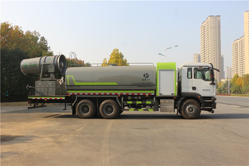 重汽大型霧炮灑水車產品簡述 抑塵車又稱為綠化噴灑車、多功能灑水車、園林綠化灑水車。抑塵灑水車適合于各種路面沖洗,樹木、綠化帶、草坪綠化,道路、廠礦企業 施工建設,高空建筑沖洗。抑塵也可以作為運水車使用,最常見的車 型有綠化噴灑車、多功能灑水車、綠化灑水車幾大類。
