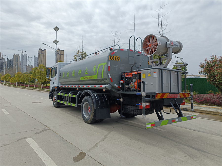 灑水車產(chǎn)品簡(jiǎn)述:縱昂牌 CLT5181TDYEQ6 型多功能抑塵車標(biāo)配前噴(鴨嘴)、后對(duì)沖、 后灑、側(cè)噴、后置式工作平臺(tái),平臺(tái)上配置綠化水炮(可 360°旋轉(zhuǎn),既可以調(diào) 成柱狀,也可以調(diào)成霧狀),配備優(yōu)質(zhì)大功率專用灑水泵(可自吸自排,可從河 里或池塘抽水到罐體),取力器,雜物過(guò)濾網(wǎng),消防接口,自流球閥系統(tǒng)、取力 器、球閥、濾網(wǎng)均為國(guó)家標(biāo)準(zhǔn)產(chǎn)品,主管道加粗,法蘭墊、法蘭盤加厚,大通徑 球閥。整體具備性能優(yōu)良安全可靠、效率高、流量大、維修方便等特點(diǎn)