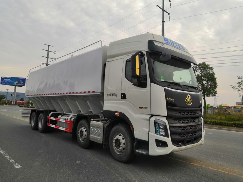 柳汽乘龍前四后八散裝飼料運(yùn)輸車/40方養(yǎng)殖場飼料配送車整車型號(hào):XBZ5310ZSLL6,柳汽H7駕駛室,玉柴460馬力國六發(fā)動(dòng)機(jī),法士特12檔鋁合金變速箱,5.5T雙前橋,440雙后橋,12R22.5,全氣囊懸浮駕駛室,電動(dòng)玻璃、LCD液晶儀表、自動(dòng)空調(diào)、真皮多功能方向盤、定速巡航、ABS、中控鎖、自動(dòng)調(diào)整臂。整車尺寸:12000×2500×3995mm。/40方散裝飼料車