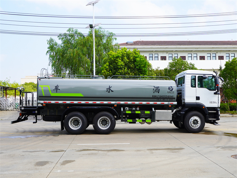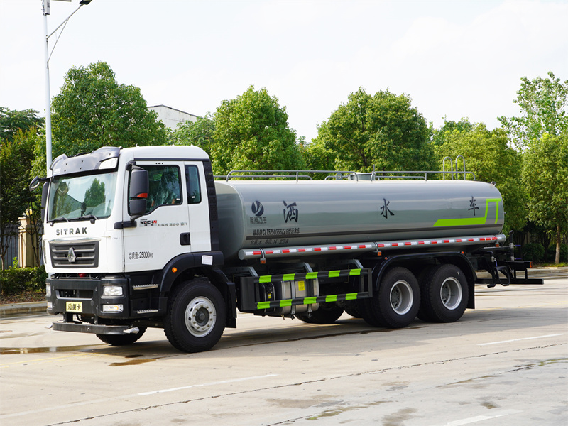 重汽汕德卡18噸灑水車產品標配前噴(鴨嘴)、后沖、后灑、側噴、后置式工作 平臺,平臺上配置綠化水炮(可 360°旋轉,既可以調成柱狀,也可 以調成霧狀,更可以調成直沖狀、大雨、中雨、小雨、毛毛雨),配 備優質大功率專用灑水泵(可自吸自排,可從河里或池塘抽水到罐體), 取力器,雜物過濾網,消防接口,自流球閥系統、取力器、球閥、濾網 均為國家標準產品,主管道加粗,法蘭墊、法蘭盤加厚,大通徑球閥。 整體具備性能優良安全可靠、效率高、流量大、維修方便等特點。