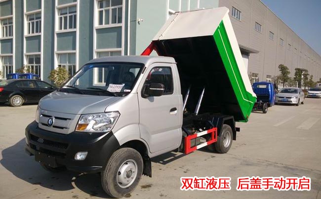 箱體容積3~4立方米,板材厚度邊3底4,箱體結構為墻板形式,國產(chǎn)多路閥,油泵、取力器、油缸,駕駛室外部操作、箱體底部雙缸液壓舉升卸料,后門機械鎖緊、手動開啟。