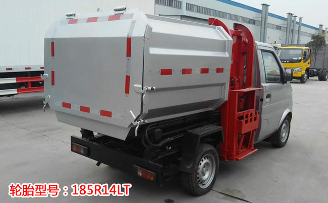 重汽王牌掛桶式垃圾車,1650單排駕駛室,綿陽112馬力汽油發(fā)動機,5檔變速箱,185R14LT輪胎型號,140大梁,3噸后橋、油剎。