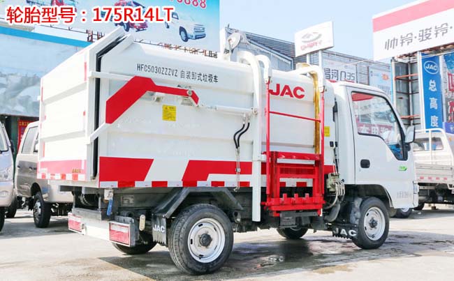 江淮康鈴X1掛桶式垃圾車,柳汽87馬力,5檔變速箱,1.4T后橋,2400軸距,175R14LT(后單胎),帶暖風(fēng)、空調(diào)、可調(diào)方向盤(pán)、電預(yù)熱、電熄火、不翻轉(zhuǎn)、金屬漆。