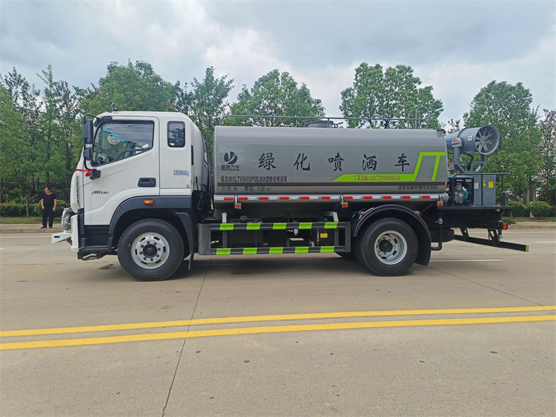 1.產(chǎn)品簡述:縱昂牌 CLT5188GPSEQ6A 型綠化噴灑車標(biāo)配前噴(鴨嘴)、后對沖、 后灑、側(cè)噴、后置式工作平臺,平臺上配置綠化水炮(可 360°旋轉(zhuǎn),既可以調(diào) 成柱狀,也可以調(diào)成霧狀),配備優(yōu)質(zhì)大功率專用灑水泵(可自吸自排,可從河 里或池塘抽水到罐體),取力器,雜物過濾網(wǎng),消防接口,自流球閥系統(tǒng)、取力 器、球閥、濾網(wǎng)均為國家標(biāo)準(zhǔn)產(chǎn)品,主管道加粗,法蘭墊、法蘭盤加厚,大通徑 球閥。整體具備性能優(yōu)良安全可靠、效率高、流量大、維修方便等特點。
