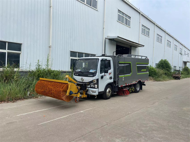 CLT5071TXSEQ6 型清掃車功能介紹 1. 東風多利卡洗掃車采用洗,掃,吸,混合的方式收集垃圾,濕式除塵、電液 PLC 一鍵控制,液壓傾翻卸料的作業方式對路面進行清掃作業。 2. 采用副發動機專門驅動風機和液壓系統,保證行駛過程中能繼續工作,保證 清掃過程的連續性。 3. 采用“中置兩掃盤 +噴霧降塵+中置寬幅吸嘴(內置高壓噴桿及兩側高壓噴 桿)”的結構布局,對泥濘路面有更好的清潔效果,清掃過程中砂石不在飛 濺揚塵,此布局便于清掃裝置與吸盤的調整與維護,轉場作業時整車通過性 好。 4. 副發動機與風機之間的傳動設置設有自動離合器,可保證副發動機空載啟動 和停機時與風機的自動脫離,降低了對副發動機的沖擊,提高了副發動機的 工作可靠性和使用壽命。 5. 掃盤有遇障礙自動避讓保護功能和自動復位功能,遇到障礙自動回縮,越過 障礙自動回位。 6. 掃盤轉速可根據各種不同的清掃工況來調整轉速,能保證在各種污染狀況下 都有良好的清掃效果 7. 采用先進,高效的專用風機和可隨路面自動找平的全浮動式吸嘴,清掃效果 好,使用壽命長。