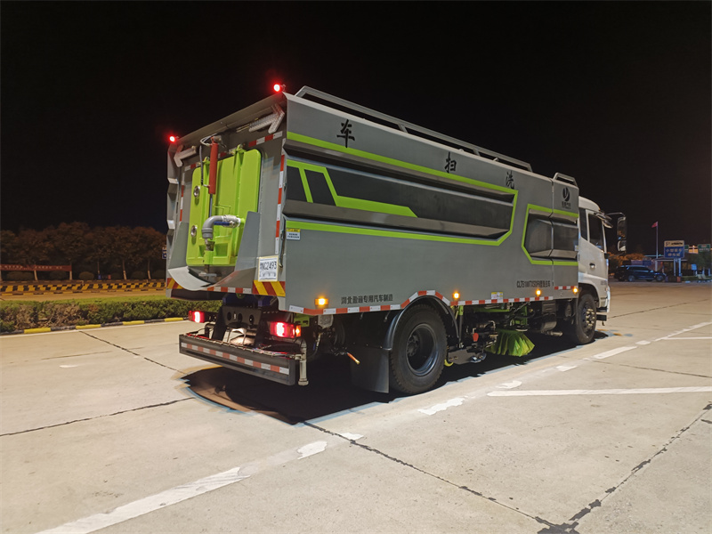 洗掃車具有路面清洗,路面清掃路緣和路緣石立面洗刷、低壓沖洗、噴霧 除塵等多功能。 有“全洗掃”、“左洗掃”、“右洗掃”、“全掃”、多種作 業模式可選擇。選擇“全洗掃”模式清洗 廣場和路面,清晰效率高效果好,洗 凈率達 95%以上。選擇“左洗掃”或“右洗掃”模式清洗 路面和路緣。需要進 行路面清掃或路面保潔作業時,可選擇掃路模式。需要噴霧除塵時,可開 啟% 節磨,進行噴霧除塵作業。可以像灑水車一喂普面進行低壓沖洗作業。 洗掃車適用于城市道路、高速公路、廣場、機場、碼頭、隧道、橋梁、合 理墻壁、路緣和 路緣石立面的機械清洗、清掃、噴霧除塵等清潔作業