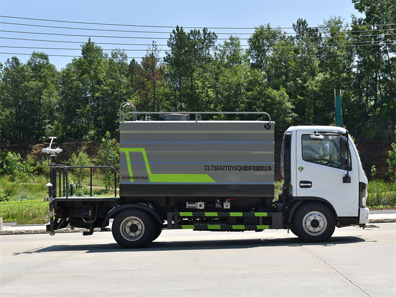 東風(fēng)7方藍(lán)牌灑水車(chē)產(chǎn)品簡(jiǎn)述:縱昂牌 CLT5042TDYEQ6 型多功能抑塵車(chē)標(biāo)配前噴(鴨嘴)、后對(duì) 沖、后灑、側(cè)噴、后置式工作平臺(tái),平臺(tái)上配置綠化水炮可 360 °旋轉(zhuǎn),既可 以調(diào)成柱狀,也可以調(diào)成霧狀),配備優(yōu)質(zhì)大功率專(zhuān)用灑水泵(可自吸自排, 可從河里或池塘抽水到罐體),取力器,雜物過(guò)濾網(wǎng),消防接口,自流球閥系統(tǒng)、 取力器、球閥、濾網(wǎng)均為國(guó)家標(biāo)準(zhǔn)產(chǎn)品,主管道加粗,法蘭墊、法蘭盤(pán)加厚,大通徑球閥。整體具備性能優(yōu)良安全可靠、效率高、流量大、維修方便等特點(diǎn)