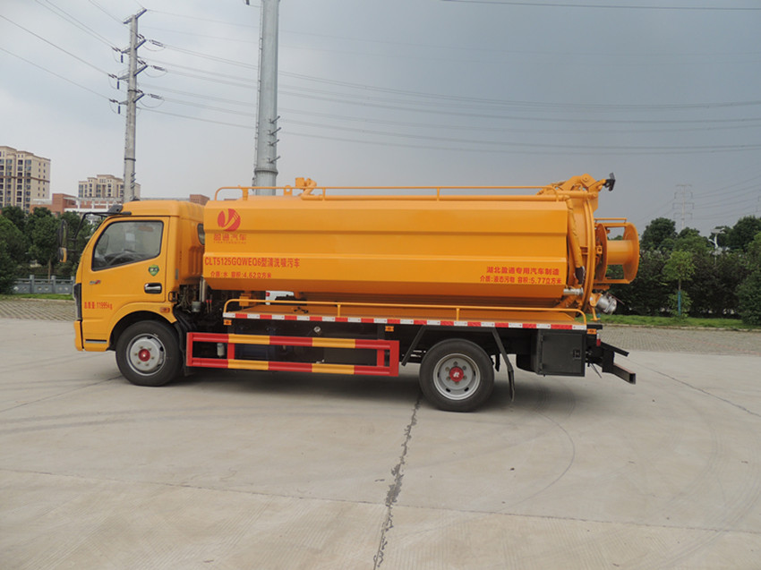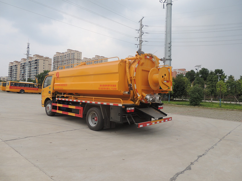 吸污車底盤配置: 采用東風原廠多利卡底盤,白色駕駛室(顏色可選),萬里揚6檔變速箱,軸距3800mm, 245真空胎,原廠abs,帶方向助力,離合助力器,氣剎制動,帶冷暖空調。