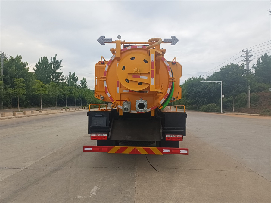 東風(fēng)12方清洗吸污車(chē)上裝配置:罐體采用優(yōu)質(zhì)碳鋼板制作,雙耀215L流量高壓泵,SK-12型水循環(huán)泵,配100米19mm高壓管,兩根8米吸污管。,帶氣吹水,水污互通,罐體后吸污口為DN100球閥,排污口為DN150孔徑球閥,罐體后蓋可液壓打開(kāi),罐體可液壓舉升。清水罐4方,污水罐8.5方