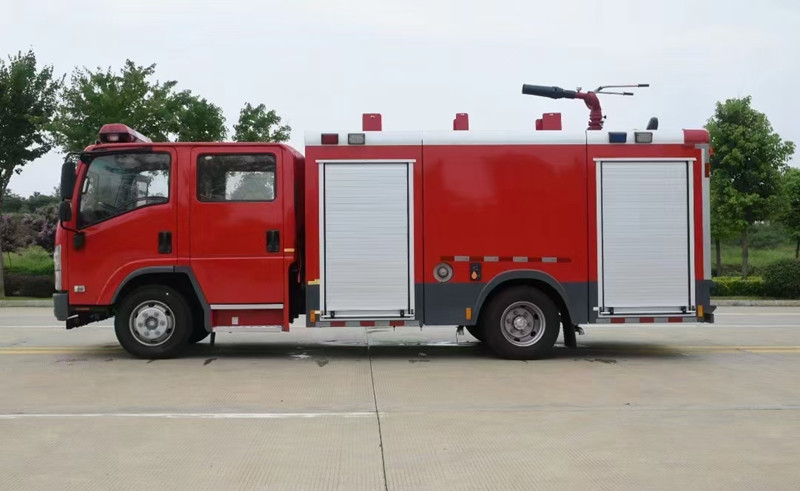 重慶五十鈴2-3噸消防車慶鈴QL1070A6HWY底盤改裝,平頭雙排駕駛室,液壓翻轉(zhuǎn),五十鈴4KH1CN5LS發(fā)動機(jī),98馬力,國五排放,罐體容積2-3立方米;整車結(jié)構(gòu)緊湊,方便靈活,動力性能好,車速高,能自由進(jìn)出鄉(xiāng)村狹窄道路及小區(qū),具有大型消防車的全套消防功能,上裝箱體的上裝骨架全部采用引進(jìn)歐洲技術(shù)生產(chǎn)的鋁合金型材制造,整車的重量減少,機(jī)動性能和整車載重量提高。除了裝備消防水泵及器材以外,還設(shè)有較大容量的貯水罐及水槍、水炮等。可將水和消防人員輸送至火場獨立進(jìn)行撲救火災(zāi)。也可以從水源吸水直接進(jìn)行撲救,或向其他消防車和滅火噴射裝置供水。在缺水地區(qū)也可作供水、輸水用車,主要適用于大中城鎮(zhèn)、鄉(xiāng)村狹窄街道、城市小區(qū)、繁忙的批發(fā)市場等場所的一般物質(zhì)滅火,閑暇時可用于園林噴灌、道路清灑。