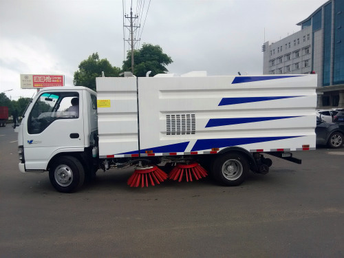 5方掃路車底盤配置:五十鈴120馬力發(fā)動(dòng)機(jī)帶中冷增壓,3360軸距,MSB5檔變速箱,7.00R16 14PR鋼絲胎,2.5噸前橋,4.8噸加強(qiáng)型后橋,原廠空調(diào),電動(dòng)窗,ABS,離合助力。