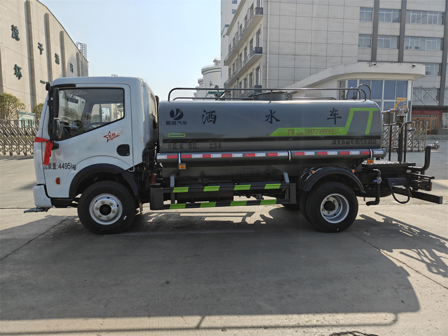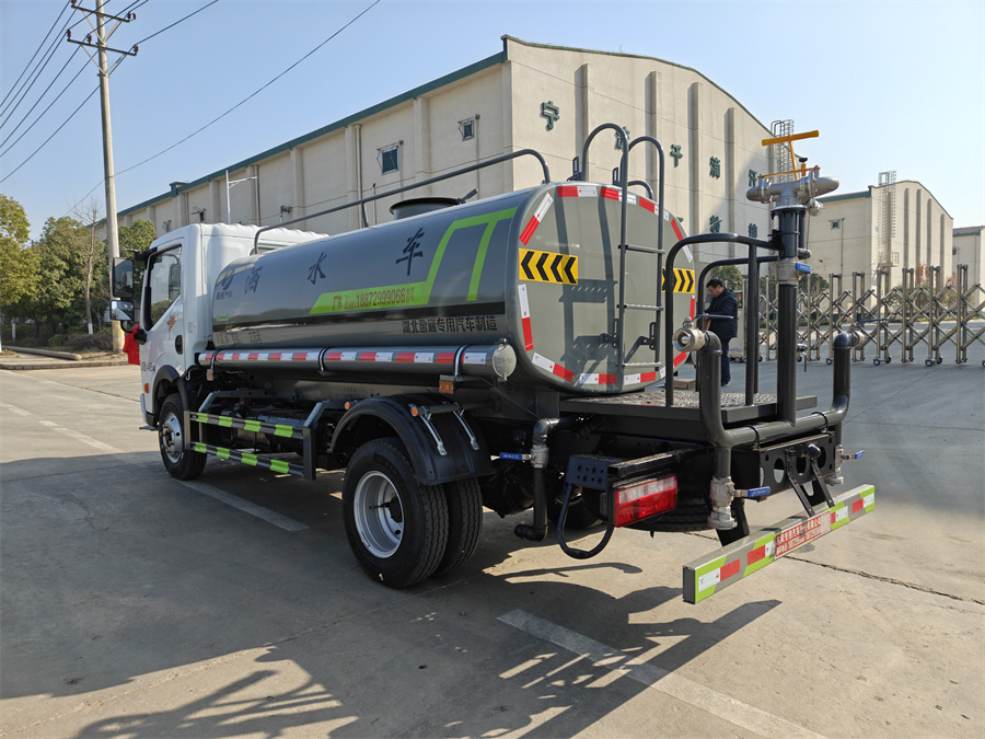 縱昂牌 CLT5071GSSEQ6 型灑水車標配前噴(鴨嘴)、后對沖、后灑、 側噴、后置式工作平臺,平臺上配置綠化水炮(可 360°旋轉,既可以調成柱狀, 也可以調成霧狀),配備優質大功率專用灑水泵(可自吸自排,可從河里或池塘 抽水到罐體),取力器,雜物過濾網,消防接口,自流球閥系統、取力器、球閥、 濾網均為國家標準產品,主管道加粗,法蘭墊、法蘭盤加厚,大通徑球閥。整體 具備性能優良安全可靠、效率高、流量大、維修方便等特點