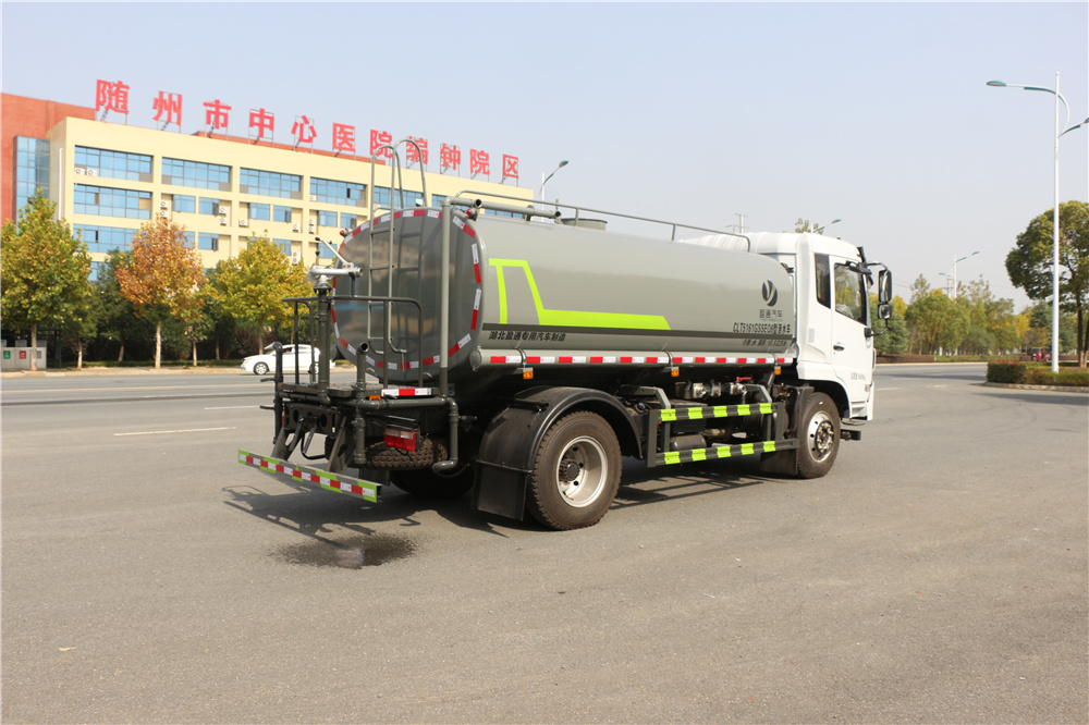 專用功能配置:罐體實際容積約為12.立方米,采用武鋼優質碳鋼板卷壓成型。配備專用灑水泵,自吸自排。前噴后灑、側噴、后工作平臺及灑水高壓炮。灑水泵垂直自吸高度為6米左右,整車灑水寬度14米左右,后工作平臺水炮可調成:直沖狀、大雨、中雨、小雨、毛毛雨,有效射程≥28米,整車帶接頭、水位計,自流閥。后工作平臺主管道有一個一寸的澆花接口,附送2根3米水管,1個爬梯,兩側及后保險杠。