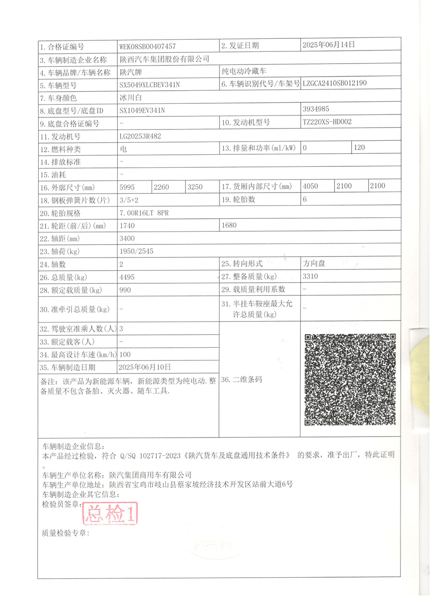 陜汽智云S300新能源冷藏車(chē)(K8-140.41度電)陜汽智云純電動(dòng)冷藏車(chē)