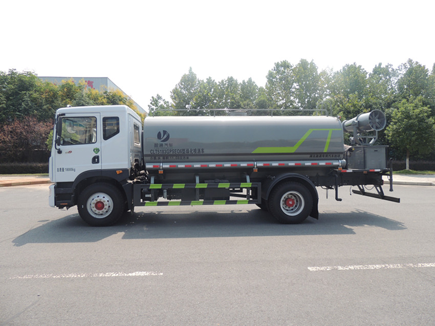 東風(fēng) D9- 12方抑塵車產(chǎn)品主要技術(shù)參數(shù) 序號 名稱 型號、規(guī)格 1 整車型號 CLT5160TDYEQ6 型多功能抑塵車 2 發(fā)動機(jī)型號 D4.0NS6B195 3 發(fā)動機(jī)馬力/功率 康明斯 195 馬力/143KW 4 發(fā)動機(jī)排量 4000ML 5 變速箱 法士特 8 檔(帶高低檔) 6 輪胎規(guī)格 275 真空胎 7 軸距 3950 8 總質(zhì)量 16200KG 9 整備質(zhì)量 6750KG 10 額定載質(zhì)量 9255KG 11 整車尺寸(長×寬×高) 7.75*2.5*3.2 12 罐體容積 12 方 13 燃料種類 柴油 14 排放標(biāo)準(zhǔn) 國六 15 水泵型號 60/90 16 罐體材質(zhì) Q235 碳鋼