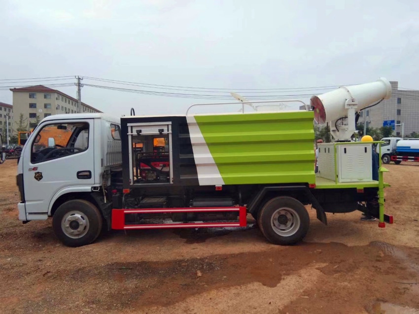 抑塵車吸程≧7米,灑水寬度≧14-16米,射程≧25-40米,引水時間<5min,流量60m3/h。前沖(噴)、后灑、帶側噴(花灑)、帶后工作平臺、平臺上安裝綠化灑水高炮(炮噴射形狀可調節:直沖、大雨、中雨、毛毛雨、霧狀、可連續調節,360°旋轉),配消防接口,自流閥,濾網,帶自吸自排功能。配備大功率專用灑水泵,泵可自吸自排,安裝過濾網,帶消防接口,可通過消防栓進水,帶自流閥,此車尾部加裝大功率農藥噴灑炮,噴灑狀態霧狀,有效射程15-45米,外部平臺帶獨立的機組。