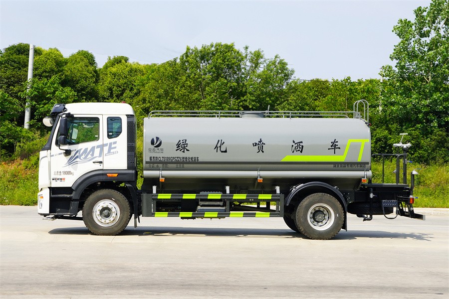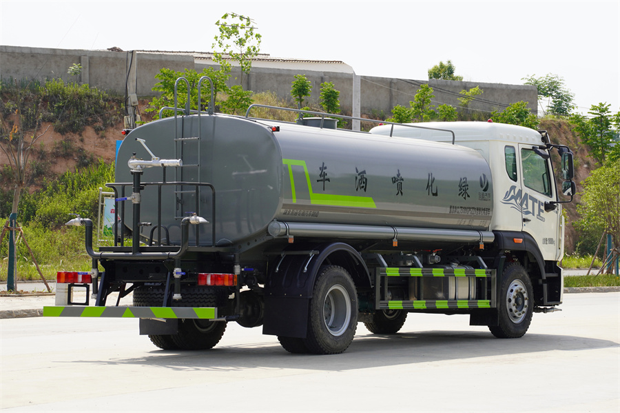 重汽15噸灑水車(chē)產(chǎn)品標(biāo)配前噴(鴨嘴)、后沖、后灑、側(cè)噴、后置式工作 平臺(tái),平臺(tái)上配置綠化水炮(可 360°旋轉(zhuǎn),既可以調(diào)成柱狀,也可 以調(diào)成霧狀,更可以調(diào)成直沖狀、大雨、中雨、小雨、毛毛雨),配 備優(yōu)質(zhì)大功率專(zhuān)用灑水泵(可自吸自排,可從河里或池塘抽水到罐體), 取力器,雜物過(guò)濾網(wǎng),消防接口,自流球閥系統(tǒng)、取力器、球閥、濾網(wǎng) 均為國(guó)家標(biāo)準(zhǔn)產(chǎn)品,主管道加粗,法蘭墊、法蘭盤(pán)加厚,大通徑球閥。 整體具備性能優(yōu)良安全可靠、效率高、流量大、維修方便等特點(diǎn)