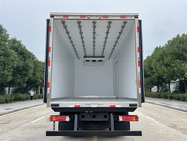 奧鈴大黃蜂6米8冷藏車冷機配置:可選安裝颶豐,凱利,凱雪,冷王,開利等冷藏機組,最低溫度可達-18度。車廂內溫度可根據需求自由調節;溫度控制器安裝在駕駛室內,方便操作控制。選裝配置:通風槽,肉鉤導軌,卡槽等。