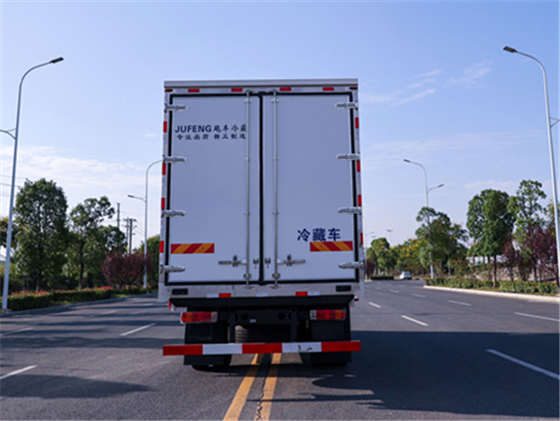 解放J6L 6米8冷藏車廂體配置為:斷橋隔溫工藝,整體結(jié)構(gòu)框架,內(nèi)外面料為3mm新款啞光玻璃鋼夾保溫層真空復(fù)合而成,廂體厚度為8cm,最新款鋁合金包邊型材,型材局部厚度為4mm(鋼制鉚釘加固),廂體內(nèi)部采用2個(gè)LED照明燈及廂體示寬燈,后門框不銹鋼材質(zhì),門框密封條為三元乙丙橡膠材質(zhì),加厚型不銹鋼合頁(yè)及鎖件;副梁為Q700車用大梁鋼,15mm厚大梁墊皮,加裝防撞膠塊,不銹鋼門鎖件,配后雙開門,副駕駛一側(cè)居中靠前開單側(cè)門一個(gè),帶2個(gè)排水孔。