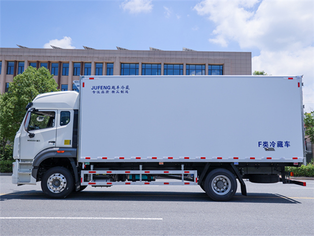 重汽豪沃6米8冷藏車廂體配置為:斷橋隔溫工藝,整體結構框架,內外面料為3mm新款啞光玻璃鋼夾保溫層真空復合而成,廂體厚度為8cm,最新款鋁合金包邊型材,型材局部厚度為4mm(鋼制鉚釘加固),廂體內部采用2個LED照明燈及廂體示寬燈,后門框不銹鋼材質,門框密封條為三元乙丙橡膠材質,加厚型不銹鋼合頁及鎖件;副梁為Q700車用大梁鋼,15mm厚大梁墊皮,加裝防撞膠塊,不銹鋼門鎖件,配后雙開門,副駕駛一側居中靠前開單側門一個,帶2個排水孔。